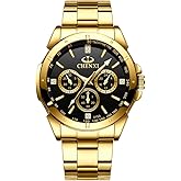 OLEVS Diamond Watches for Men,Business Dress Watch Waterproof Luminous,Male Golden Big Dial Luxury Casual Quartz Analog Watches with Day Date Calendar and Stainless Steel Band